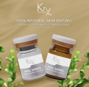 KRX Green Sea Peel is een 100% biologische peeling zonder chemische middelen en/of zuren om uw huid op een natuurlijke manier te helpen vernieuwen en te verjongen. De hoofdsamenstelling van dit product wordt uit de zee geoogst: algen en spicula’s, microscopische holle naaldjes, van de zoetwaterspons. Algen zitten boordevol antioxidanten en peptiden waardoor collageenproductie wordt gestimuleerd en de collageenafbraak wordt geremd Het stimuleert de huid doordat er tijdens de behandeling spicula’s in de huid wordt gewreven.